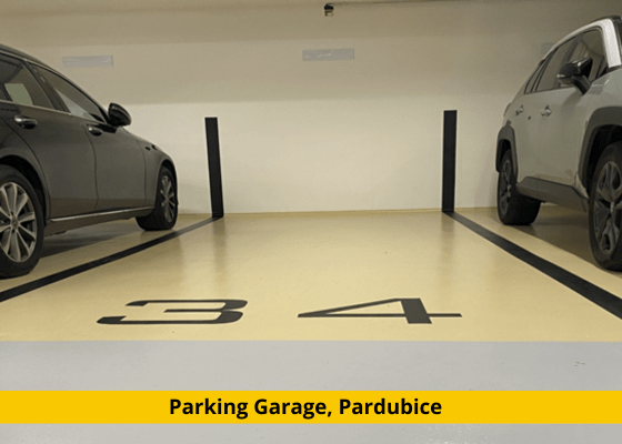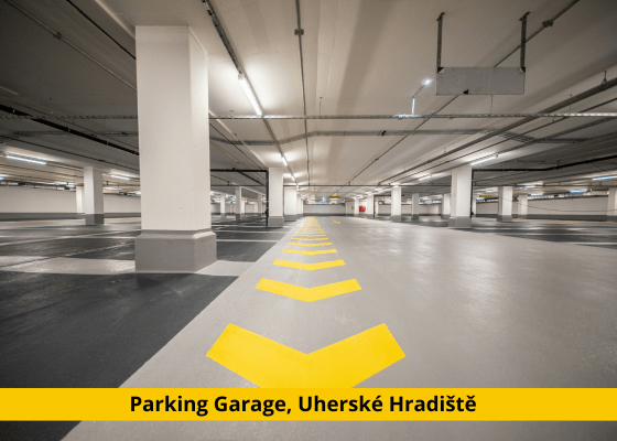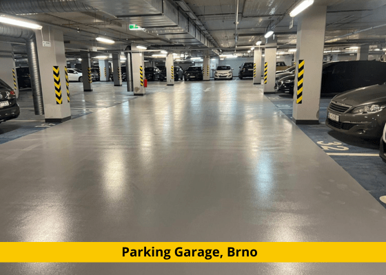 Four-layer Recetex Parking F30 flooring system for parking garages with class B3.2 crack-bridging capability at 0 °C.