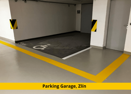 Recetex Parking F32 is a three-layer flooring system for parking garages, capable of bridging class B3.2 cracks at −20 °C and 0 °C.